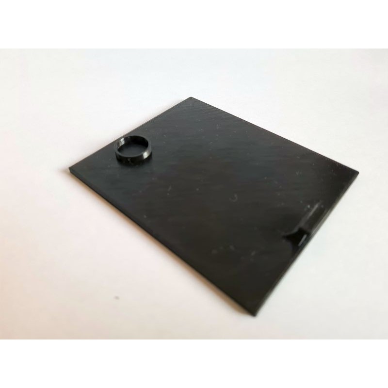 Dieser Deckel wird auf einer Seite in die Pritsche eingehängt und auf der gegenüberliegenden mit einem Magnet fixiert